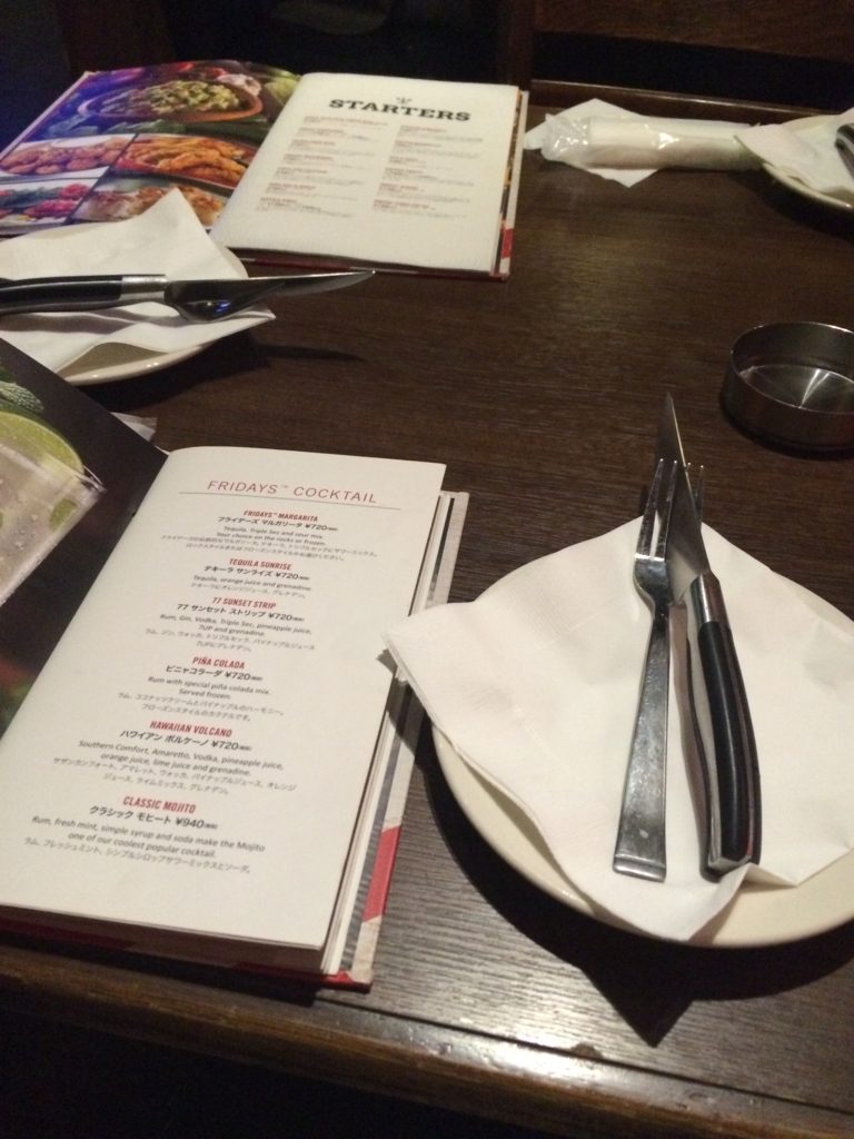 今回集合したのはT.I.G FRIDAYSというアメリカンスタイルのレストラン&バーのお店です。品川の駅前で、立地が良く、木曜日の夜なのにお店はほぼ満員でした。予約や幹事はワロリンスさんが全部やってくれて、やっぱりいい人だなぁと確信。
